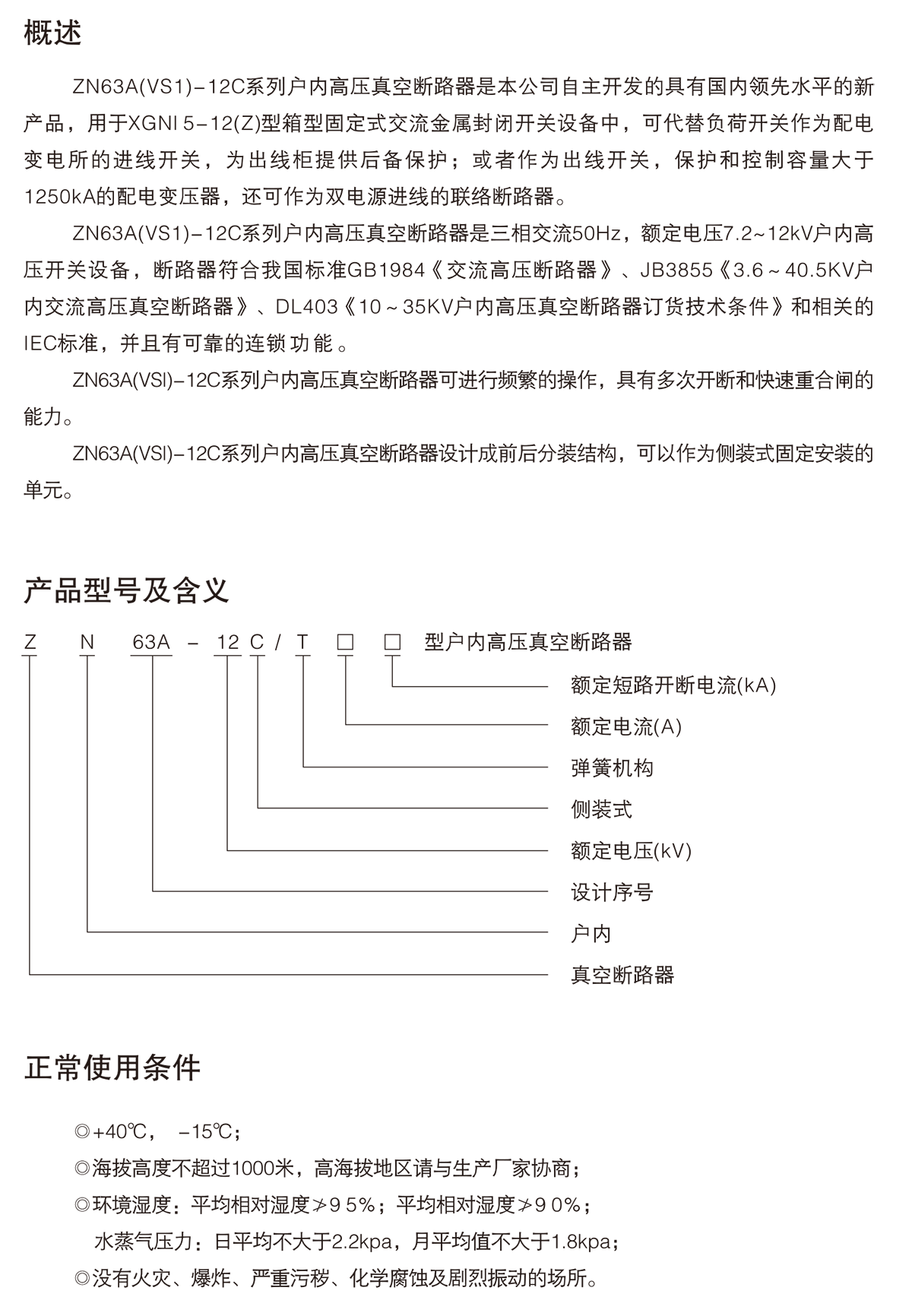 ZN63A(VS1)-12C系列戶內(nèi)高壓交流側(cè)裝式真空斷路器