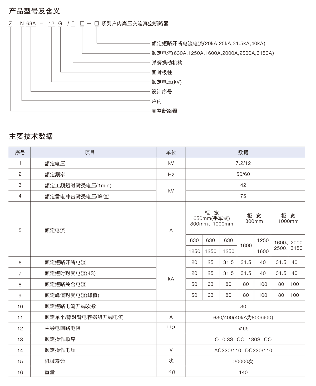 ZN63A(VS1)-12G系列戶內(nèi)高壓交流固封式真空斷路器