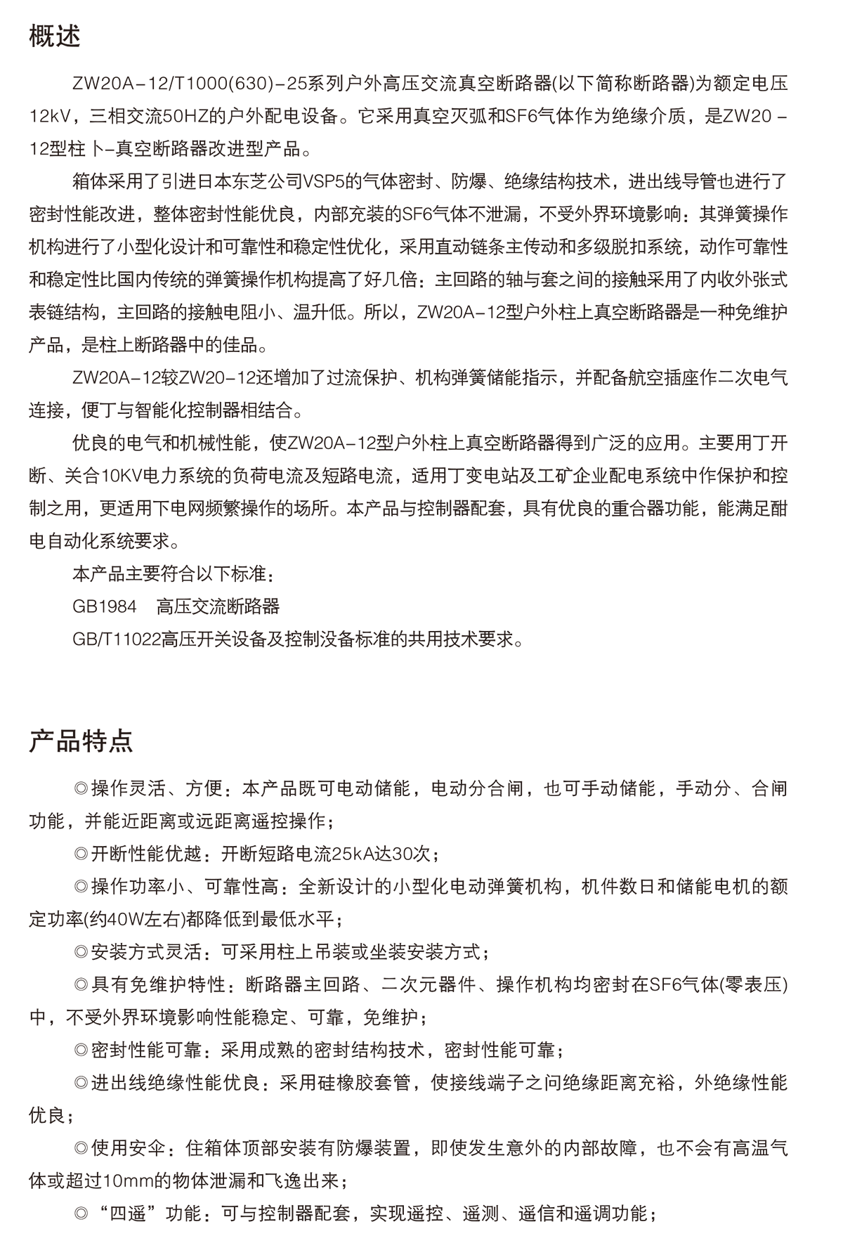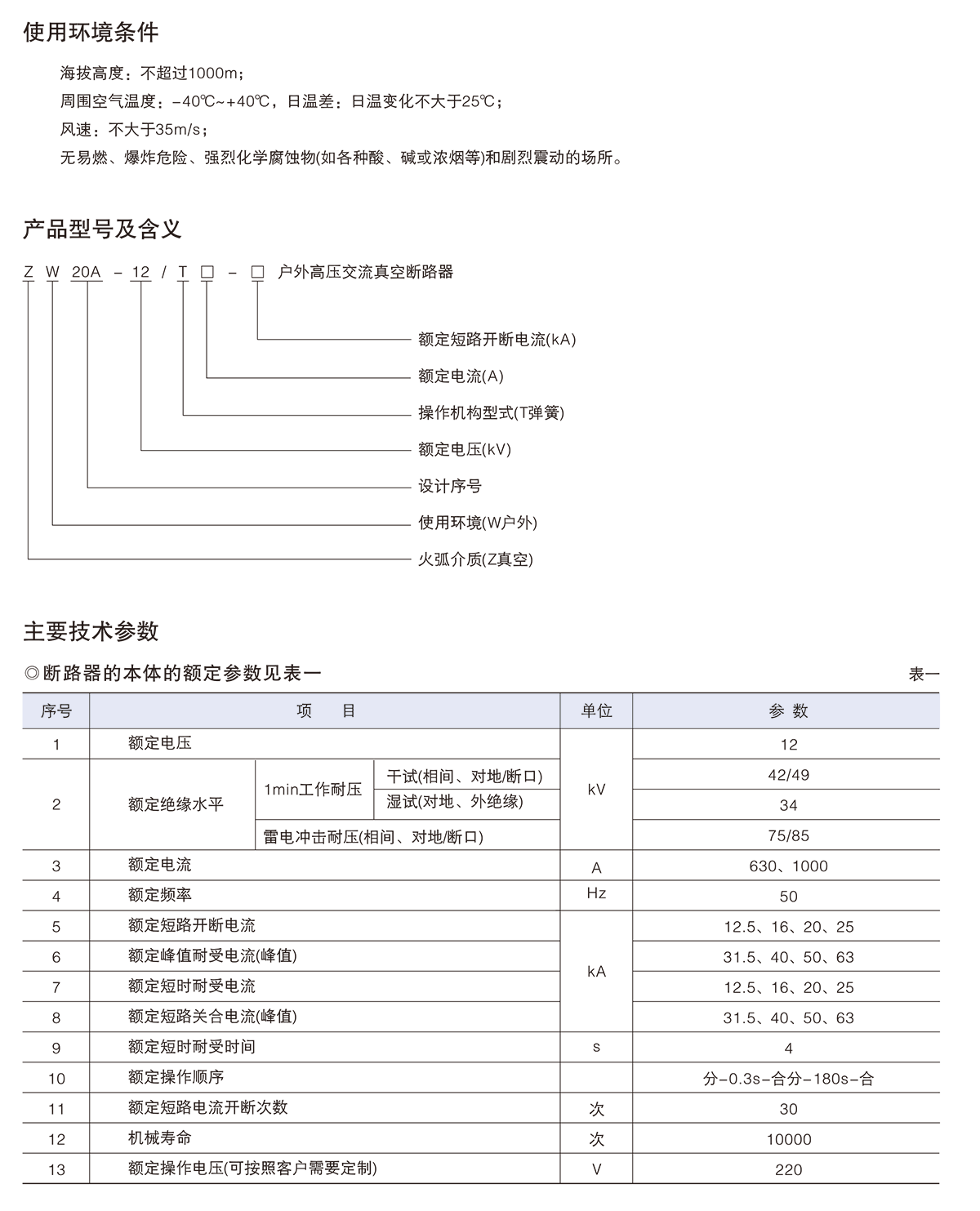 ZW20A-12系列戶外高壓交流真空斷路器