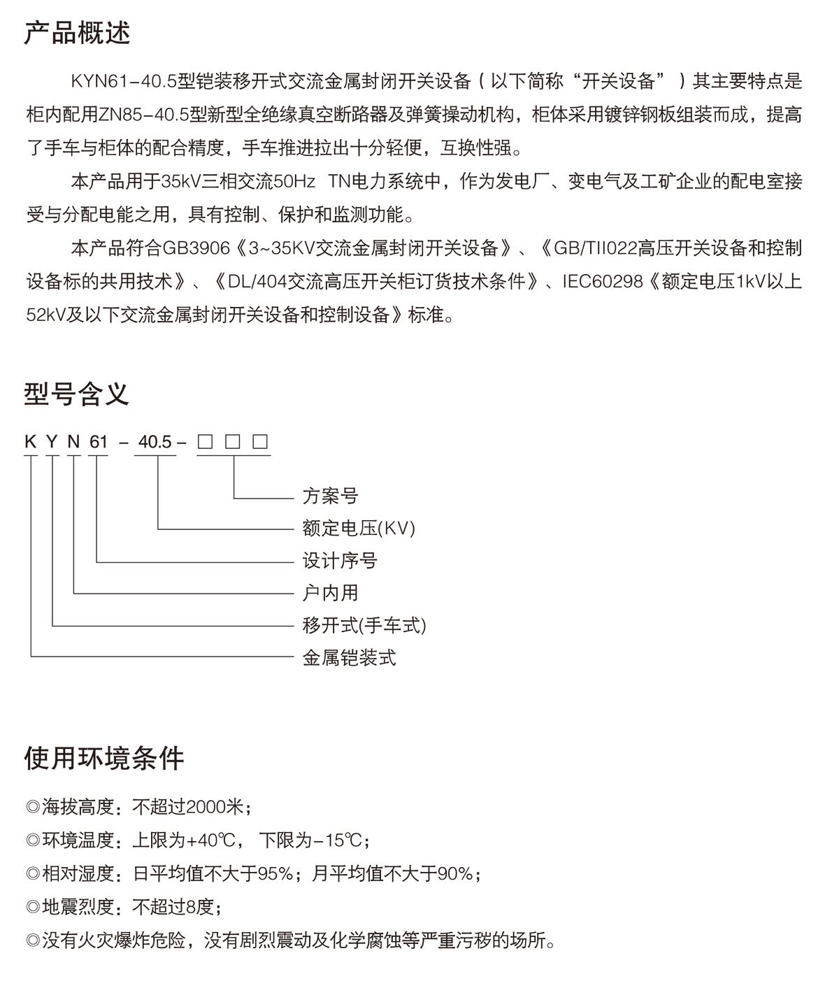KYN61-40.5鎧裝移開式交流金屬封閉開關設備